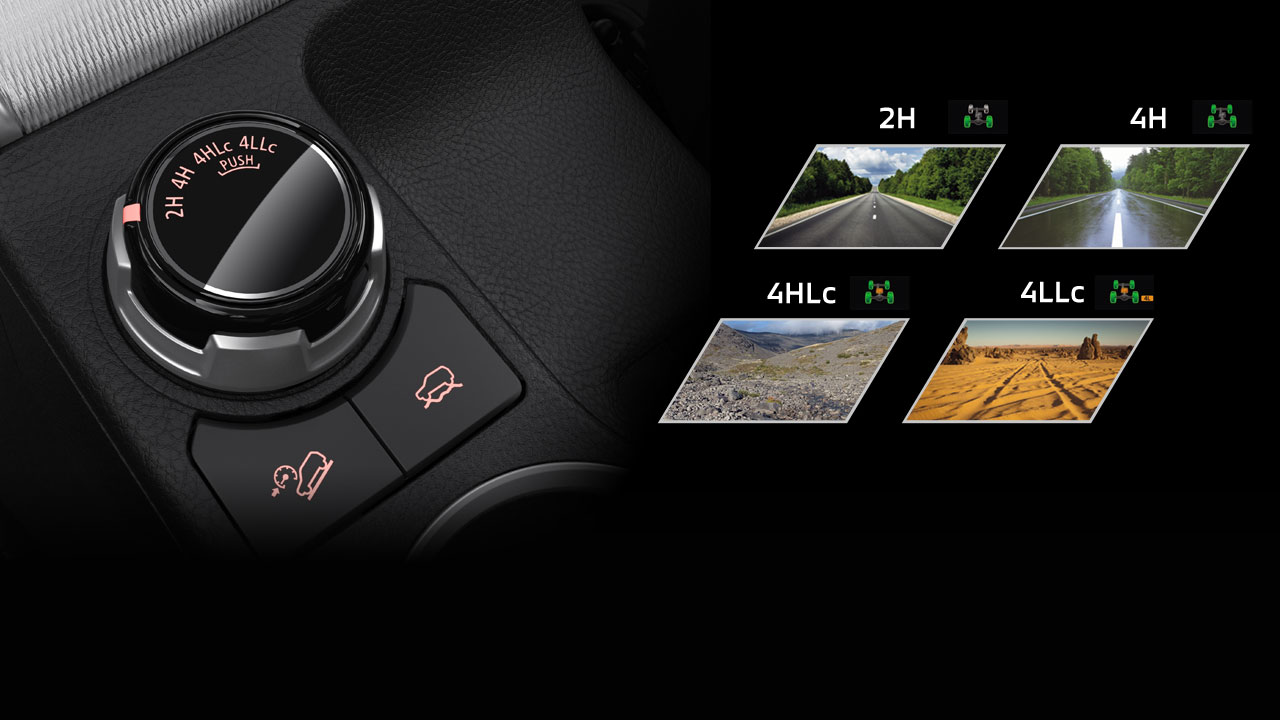 Hệ thống truyền động trứ danh Super Select II với 4 chế độ vận hành 2H-4H-4HLc-4LLc cùng nút chuyển cầu điện tử và vi sai trung tâm tăng khả năng vượt địa hình